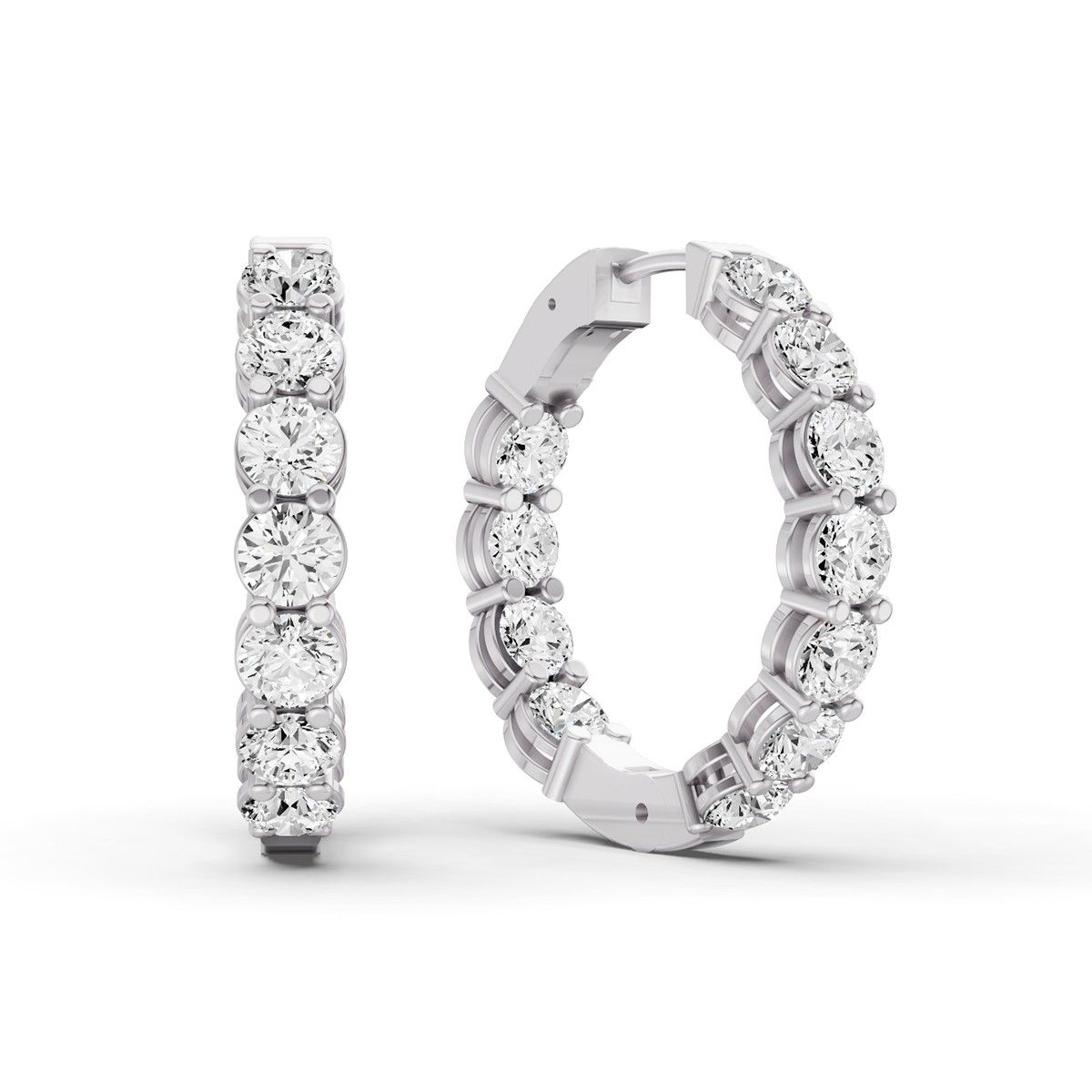 Elevate your look with these luxurious Round Shape Lab-Grown Diamond In & Out Hoop Earrings, crafted in 14K Yellow Gold or 14K White Gold. Available in 2, 5, and 7 Carat Total Weight options, each pair features exceptional E–F color, VS1–VS2 clarity diamonds—26 diamonds in the 2CTW and 5CTW styles, and 24 diamonds in the 7CTW style. Set inside and out for nonstop sparkle, these hoops are secured with a comfortable push-down lock, making them perfect for both everyday elegance and special occasions. A timeless, high-shine statement piece designed to showcase brilliant lab-grown diamonds from every angle.